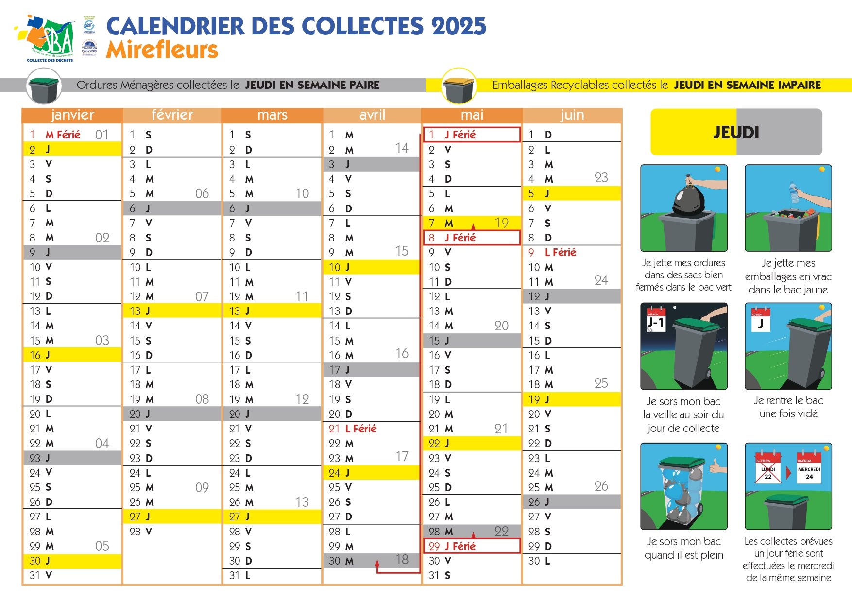 - Le jeudi en semaine impaire : votre poubelle jaune (déchets recyclables)